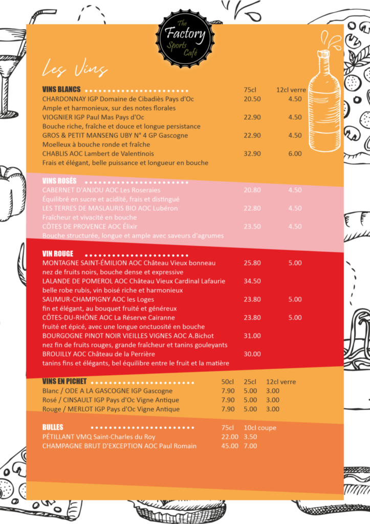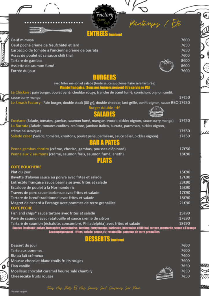 The Factory Sports Café cocktail bar Le Vaudreuil Formule midi / A la carte / Burgers / Salade