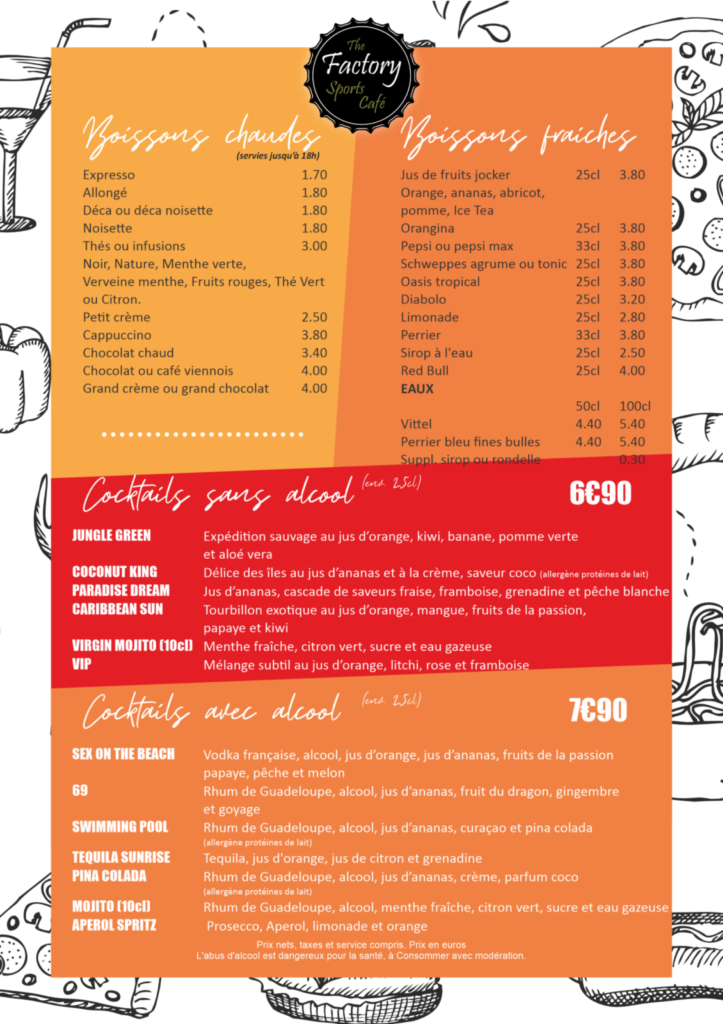 The Factory Sports Café Cocktail bar Val de Reuil Formule midi / A la carte / Burgers / Salade
